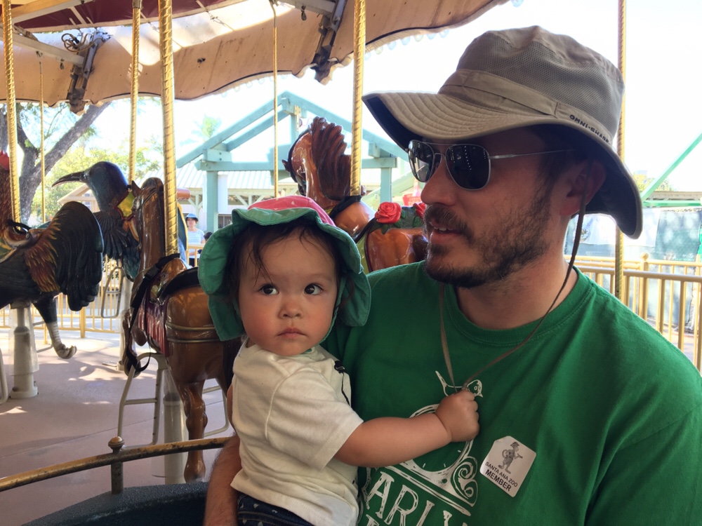 At the zoo, Anna was a little unsure of the carousel but daddy kept her safe.