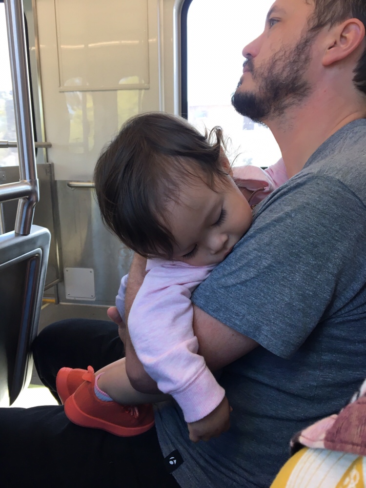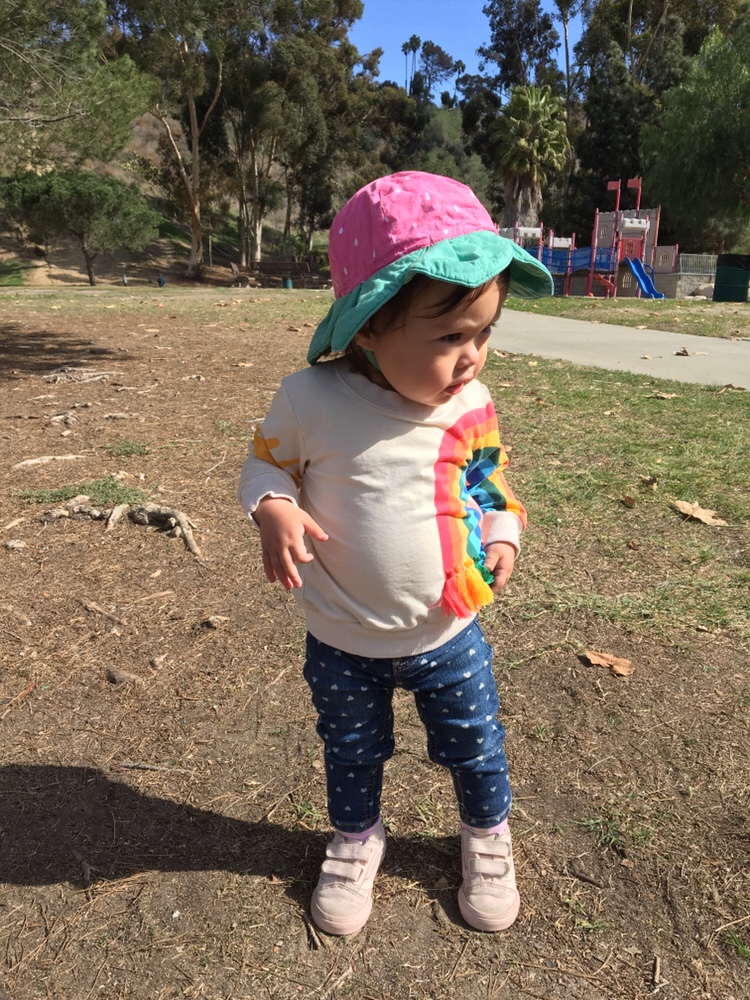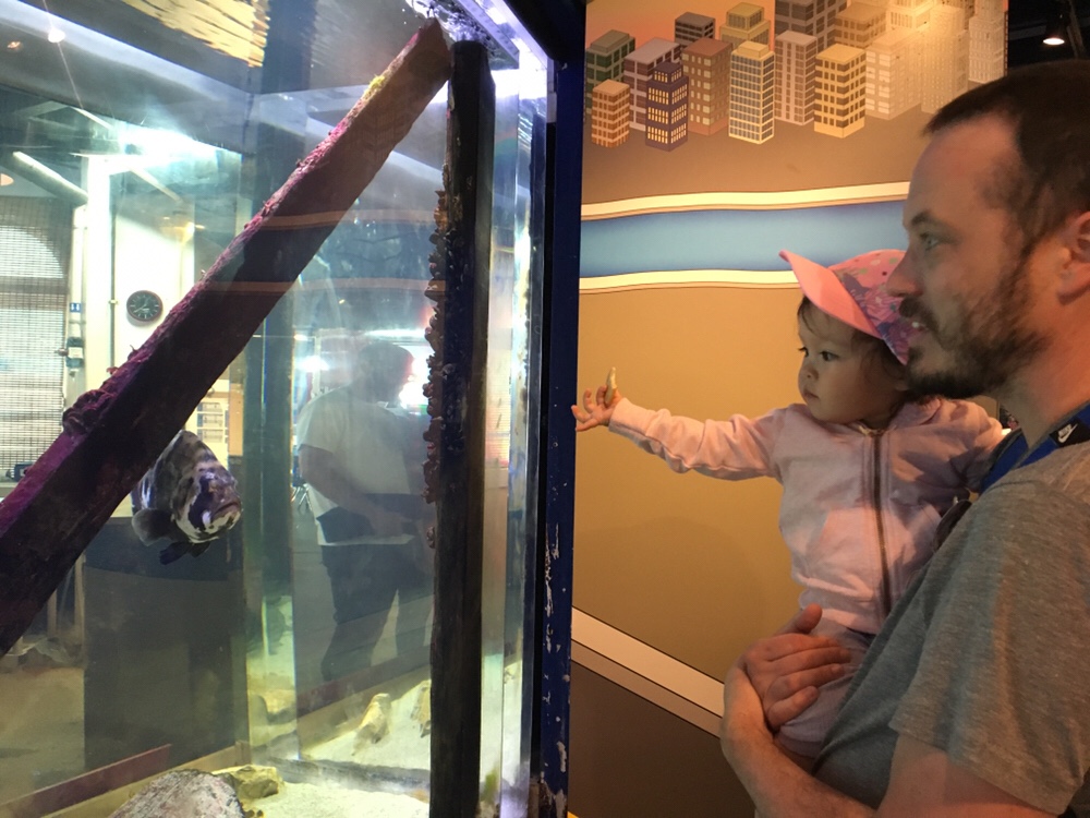 Anna rode the Metro train down to Santa Monica Pier to see the aquarium. She’s wearing her pink shark hat.