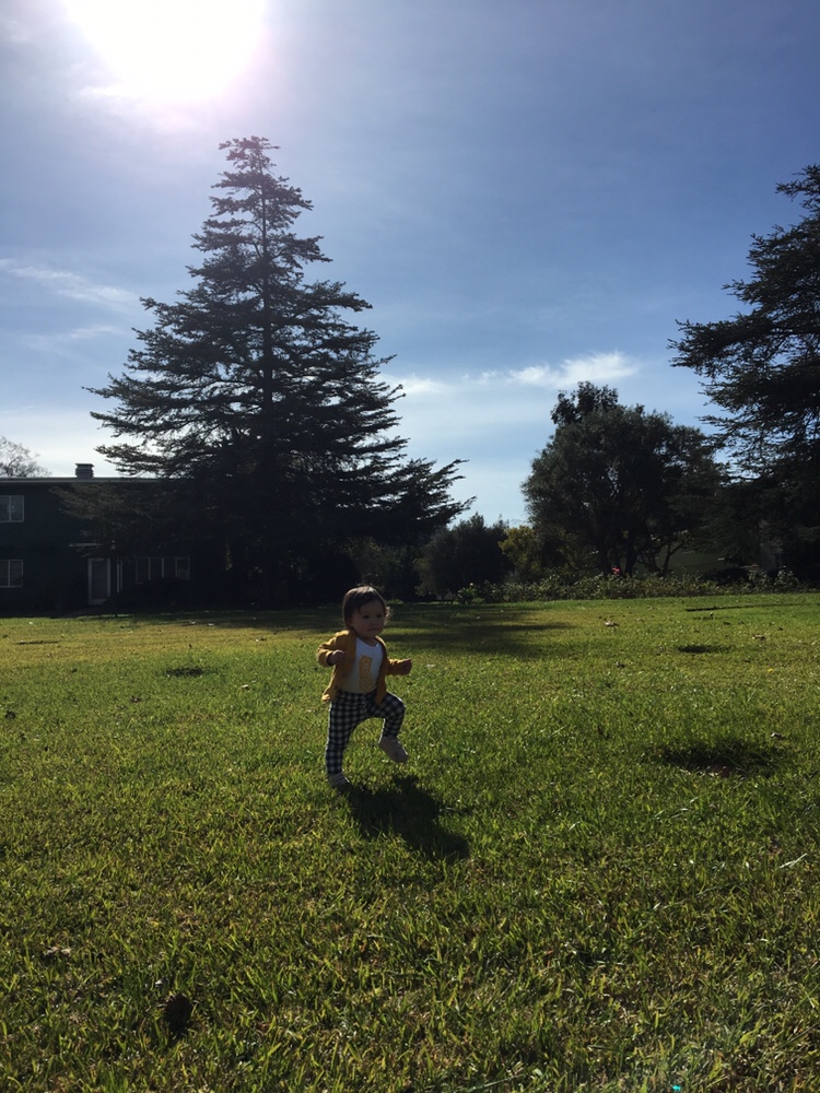 Daily walks in the grass help Anna pick up her feet and not fall as much. Up to a half hour of walking!