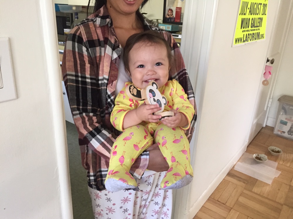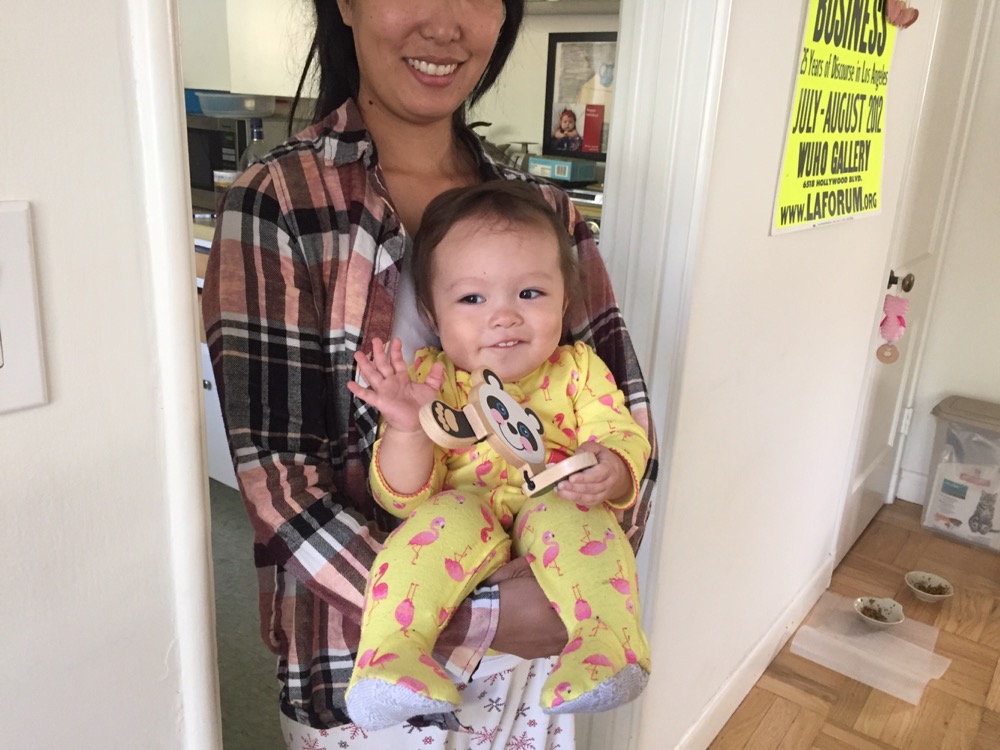 Anna says bye before I take a morning bike ride.