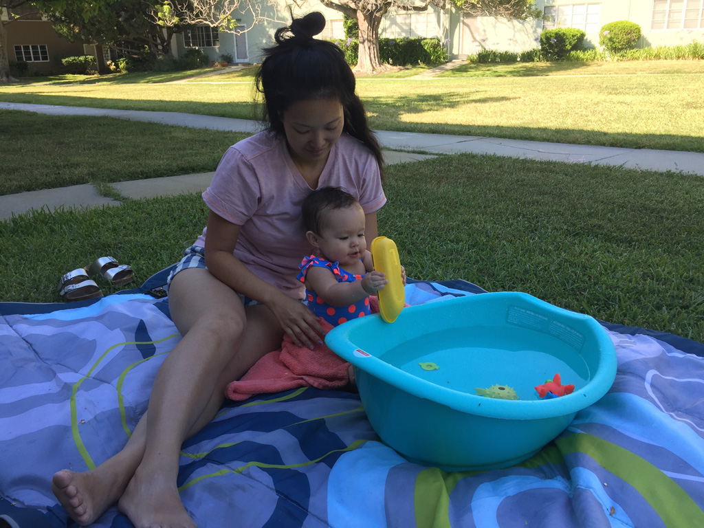 Anna enjoys the makeshift pool on a warm day