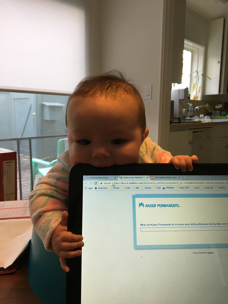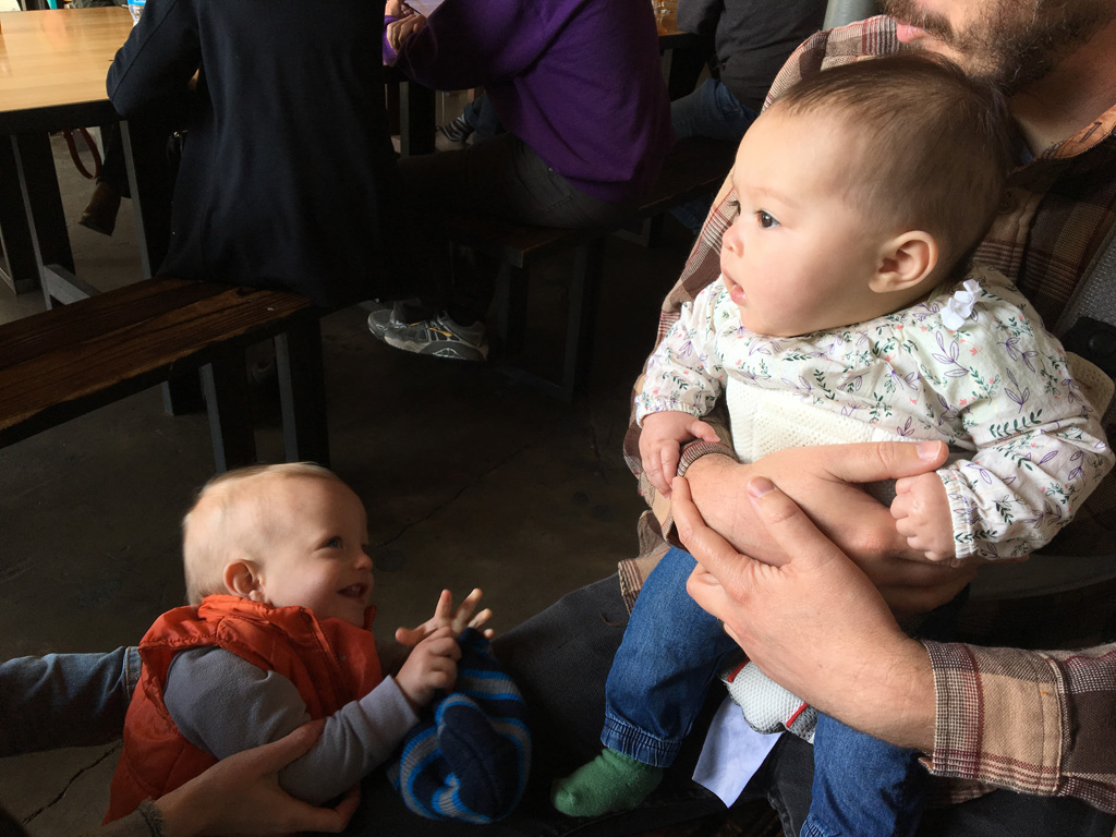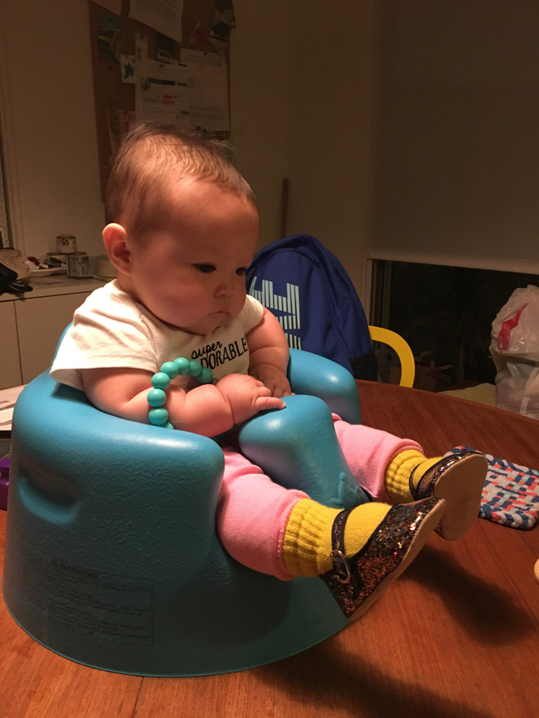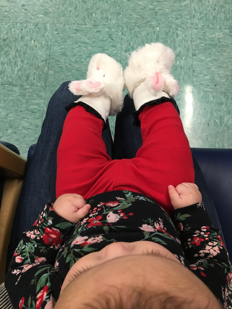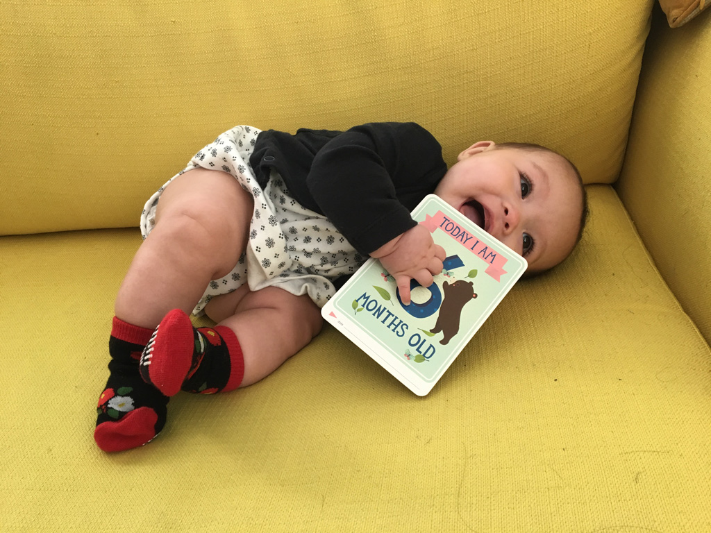 With 6 months comes the check up: catching up in height, maintaining that big smart head, and 4 more shots!