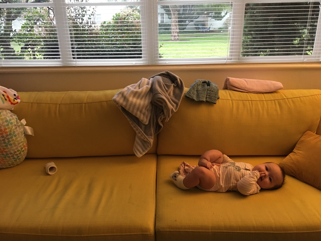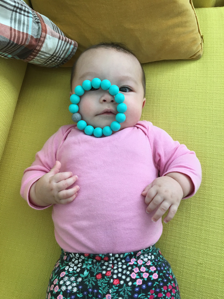 She pulled it off and threw it across the couch. Auntie Lisa said Anna might be a good pitcher!