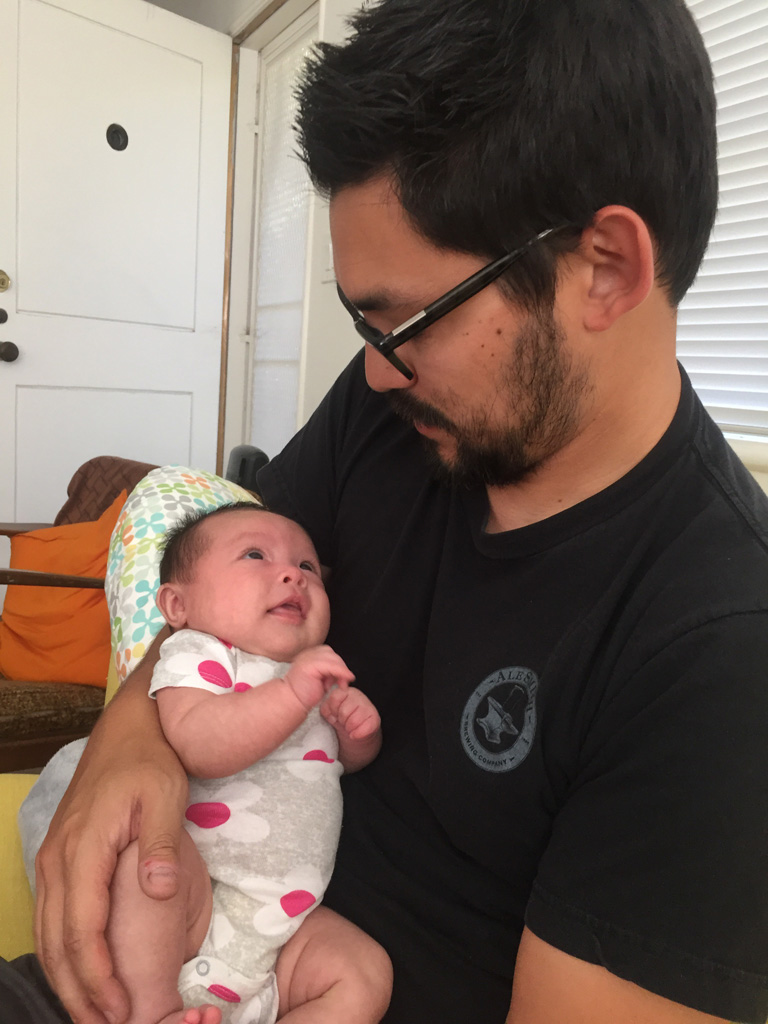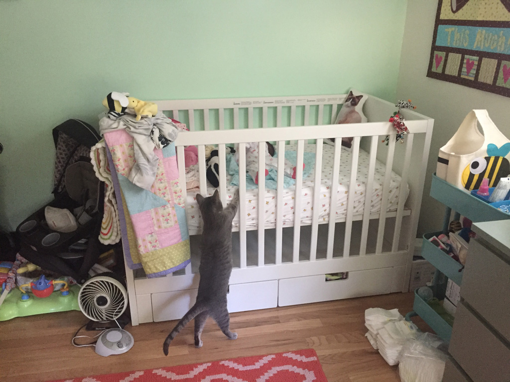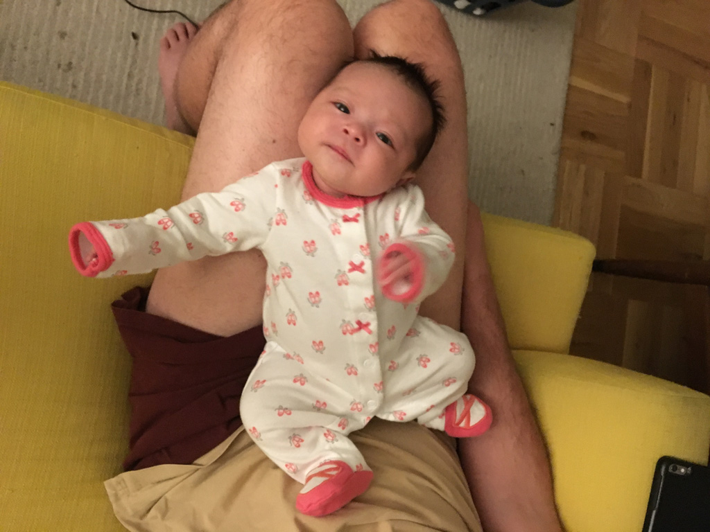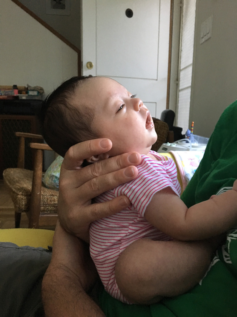 Anna watching me talk on the phone.