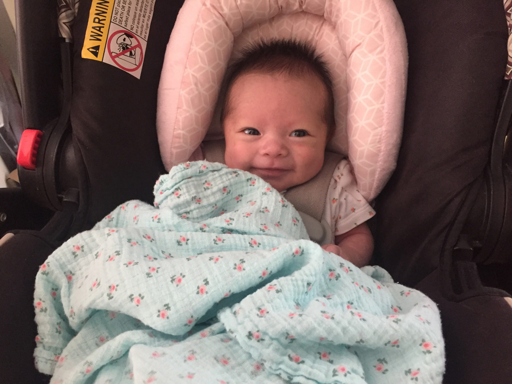5 am is wiggle time. She can hardly sit still to eat.