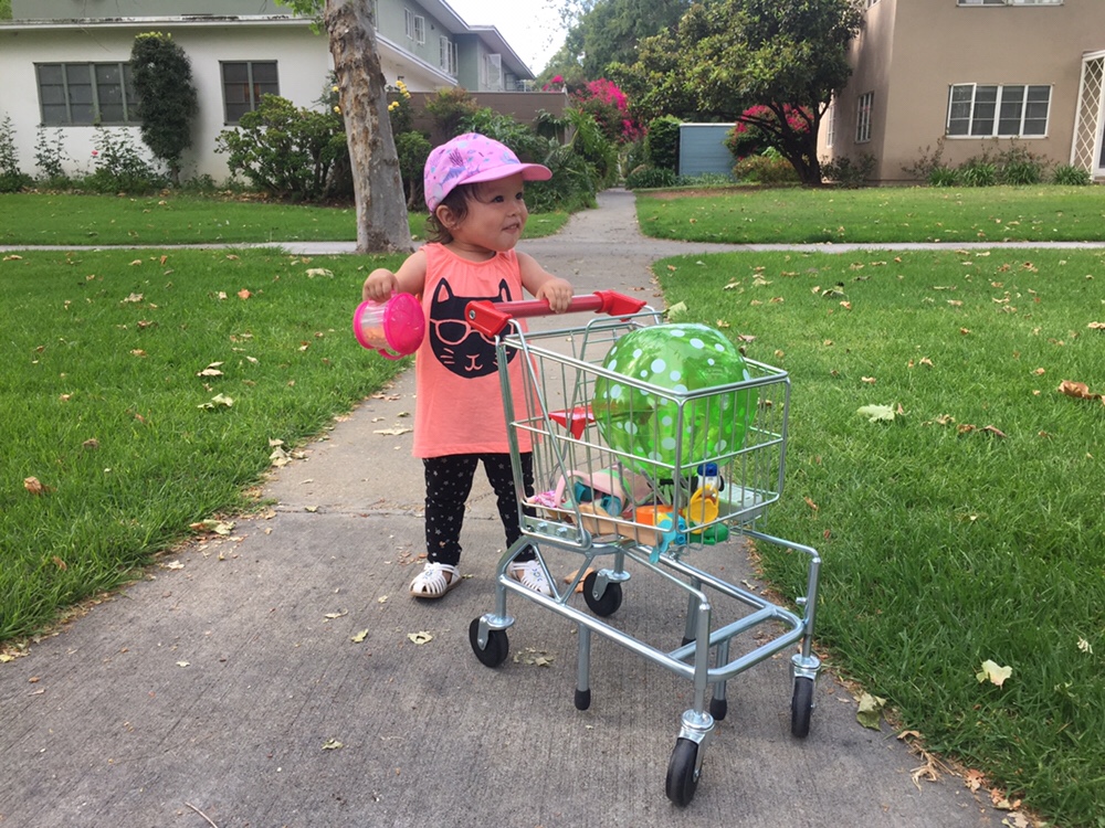 Long morning walk with a grocery cart