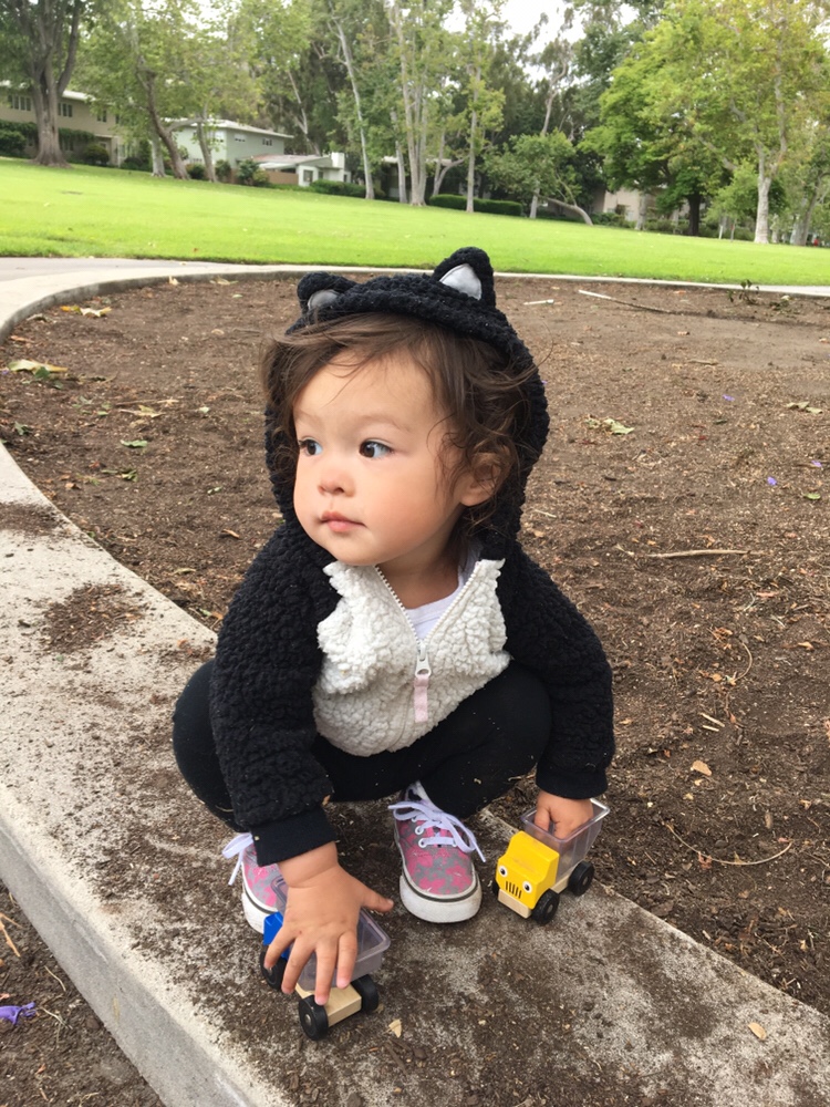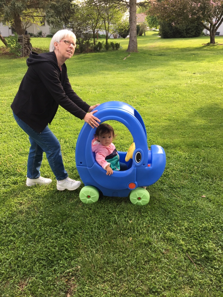 Anna found out how fun having a backyard can be, especially when Gram has a slide and new elephant car waiting for her!